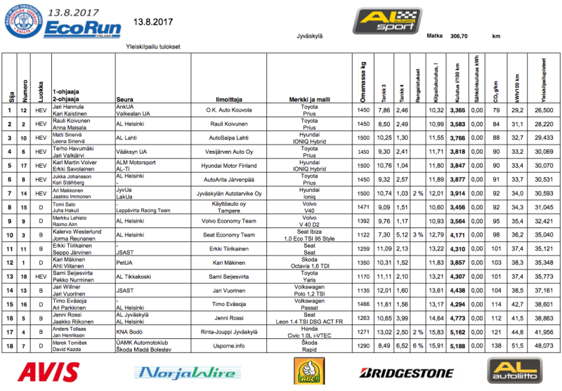 Siinä missä meillä hybridit saivat kokonaan oman sarjansa tällä kaudella ylivoimaisuutensa takia, NEZissä ne kilpailevat edelleen samassa yleiskilpailussa tavallisten polttomoottoriautojen kanssa. Käytännössä oli tiedossa jo ennen kisaa, että vain hybridillä on asiaa yleiskilpailun palkintopallille. Suorastaan seitsemän ensimmäistä sijaa meni Toyota Priuksille ja Hyundai Ioniqeille. Sijat 8-11 menivät dieseleille ja peränpitäjinä sijoilla 12-18 olivat perinteisillä bensamoottoreilla varustetut autot joukossaan yksi Toyota Yaris hybrid.