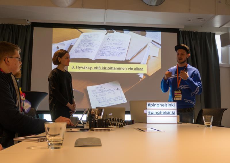 PING Helsingin ohjelman julkistuksessa iskin silmäni ensimmäisenä DIY-otsikon alta löytyneeseen ohjelmaan nimeltä "Opi parhailta – 12 vinkkiä kirjoittamiseen”. Sinne oli pakko päästä! Kun on kirjoittanut blogia yhdeksän vuotta (itse asiassa 15 vuotta, jos ihan ensimmäinenkin nettipäiväkirja lasketaan), niin sitä alkaa ehkä hieman olla juurtunut tiettyyn tyyliin. Lähinnä ongelmani on kuitenkin se, että olen kirjoittajana h-i-d-a-s!