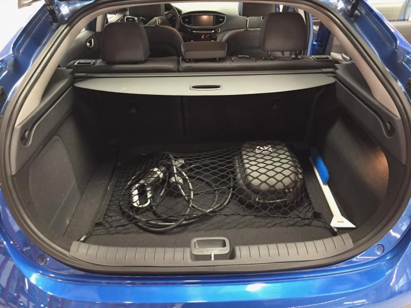 Tavaratilakin tuli testattua 560 km mökkimatkalla ja käytännössä se veti aikalailla saman verran tavaraa, kuin oman Leafinikin syvä tavaratila. Akku on pääosin sijoitettu tavaratilan alle, joten Ioniqin tavaratila on malliltaan aika matala, mutta pitkä. Tavaratilan pohjan alla on pieni lisätila jollekin pidempää säilytystä varten olevalle tavaralle.
