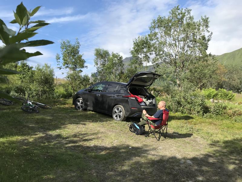 Me yövyimme poikani kanssa Lofooteilla ensimmäisen yön Kalle in Lofootten ilmaisella leirintäalueella. Lähimmälle pikalaturille Svolværiin oli siitä matkaa 11 kilometriä, joten leiriytyminen sähköttömälle leiripaikalle ei taaskaan ollut mikään ongelma.