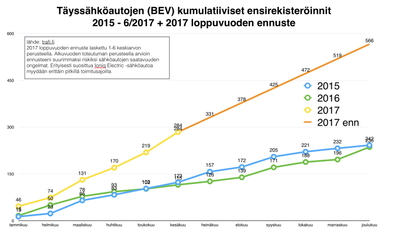 Sähköautoja on rekisteröity vuoden 2017 puoliväliin mennessä jo tuntuvasti enemmän, kuin koko viime vuonna yhteensä!