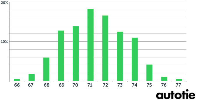 Tällä hetkellä myynnissä olevien uusien autojen ohiajomeluarvot sijoittuvat 66 - 77 dB(A) välille. Suurimmassa osassa uusista autoista meluarvo 69 ja 73 desibelin välillä. Huomionarvoista on, että meluarvot vaihtelevat huomattavasti jopa yksittäisten mallien sisällä; BMW:n 1- ja 2-sarjalaisia löytyy listan alkupään lisäksi myös listan loppupäästä 75,0 dB(A):n arvoilla.