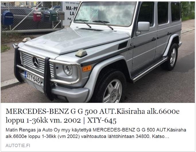 Muun muassa näihin välinelajeihin on tarkoitettu Autotien keräilysarjan kohde #17, vuoden 2002 G-Mercedes. Tällä hoituu vähän vaativampikin metsäreissu.
