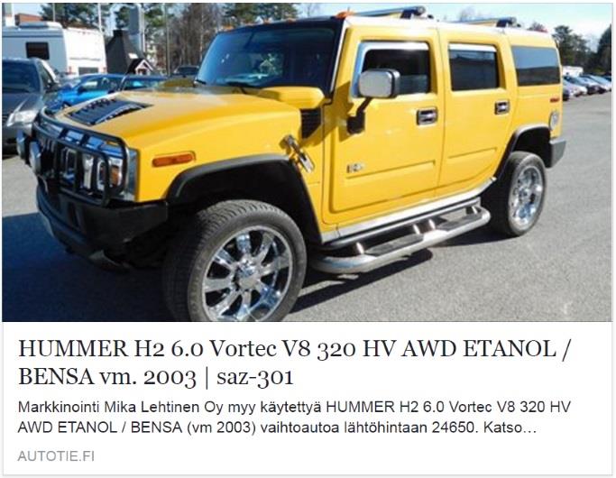 Hummer on auto, joka rakennettiin, koska miksi ei. Alun perin sotilasajoneuvo Humveestä johdettu siviiliversio on ehkä törkein, röyhkein ja ylimielisin auto mitä kaduille on koskaan rakennettu. Hummer on 2000-luvun Yhdysvallat renkailla.
