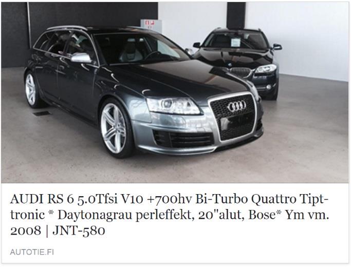 Jos tuntuu siltä, että viikonloppu käy tylsäksi, kannattaa käydä hakemassa Kuopiosta tämä RS 6. Loppuu se tylsyys nimittäin sitten siihen.