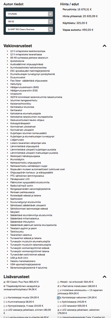 Verotusarvolaskuri kertoo, mitä varusteita saat mukaan työsuhdeautoon minkäkin kokoiselle autoedulla