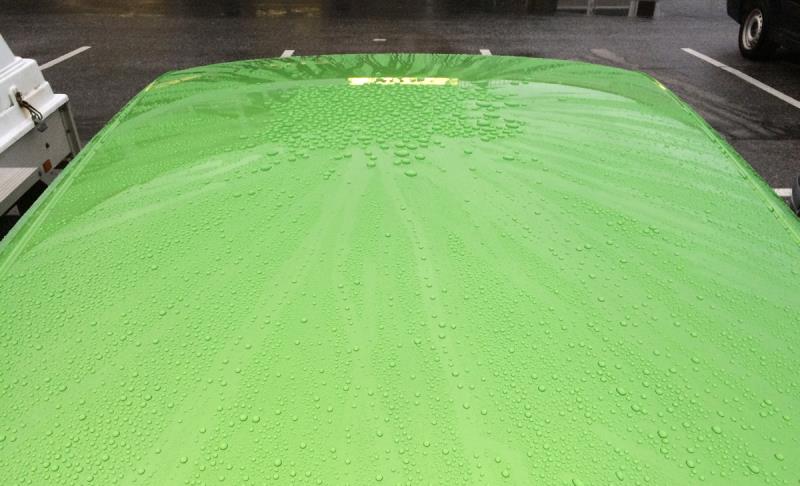 Itse olen täysin rakastunut CQuartzin kiiltoon sekä kykyyn hylkiä vettä. Ei ole kerta tai kaksi, kun on sateen jälkeen vain pitänyt jäädä ihailemaan ja valokuvaamaan auton katolla helmeileviä vesipisaroita, jotka lähtevät kiitämään, kun niitä vain pikkuisen puhaltaa. Alkuperäiseen CQuartz-pinnoitteeseen jäi vesipisaroiden kuivuessa kalkkirinkulaa, jotka sai pois vain kiillottamalla. Finestiin kalkkikuvioita ei jää niin helposti ja jos jääkin, ne irtoavat CarPron Spotless -pesuaineella. (Sillä saa kuulemma myös kalkkijäämät pois saunan ovesta ja kylpyhuoneen kaakeleista - pitäisi ehkä ostaa itsellekin!)