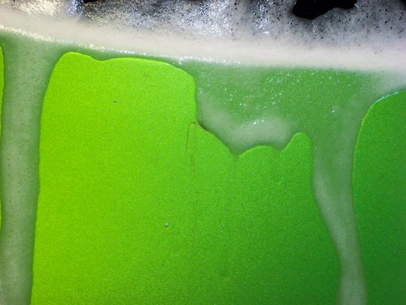 Uutukaisen Leonin pinnassa ei ollut juurikaan metallihiukkasia, sillä tässä ovat suurimmat valumat mitä Iron X irrotti. Jos pölyä olisi ollut paljon, auto olisi kauttaaltaan purppuranvärisen valuman peitossa.