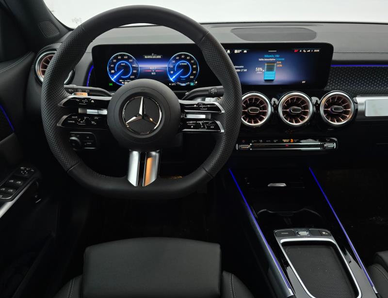 Varustelutasoltaan tämä EQB on Business Edition, eli siinä on suhteellisen kattavasti kaikki tärkeimmät varusteet. Niitä ovat esimerkiksi 18-tuuman alumiinivanteet, adaptiivinen vakionopeudensäädin, LED High Performance -ajovalot, lämpöpumppu, navigointijärjestelmä, parkkitutkat ja peruutuskamera, ratin ja etupenkkien lämmitys sekä vino pino erilaisia ajoavustimia. Lisäksi otin autoon myös sähkösäätöiset etupenkit muistitoiminnolla. Yksi asia tosin ihmetyttää. Jostain syystä Business Edition -varustelutasoon ei automaattisesti kuulu tuki puhelimen langattomalle lataukselle, vaan se pitää ottaa erillisenä lisävarusteena.