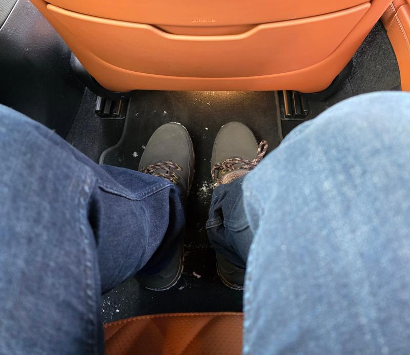 Takapenkillä jalkatilaa on vaikka muille jakaa, ja koska kyseessä on auto, joka on suunniteltu myös edustuskäyttöön, takapenkit on muotoiltu nimenomaan aikuismatkustajia ajatellen. Tässä kohtaa on tosin hyvä mainita, että takaa löytyy vain kaksi varsinaista istumapaikkaa. Keskipaikka on varattu siis muhkealle kyynärnojalle, josta löytyy myös näyttö (kuten taisin jo aiemmin mainita).