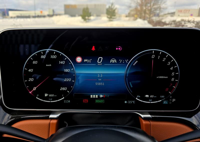 Sisälle astuessa ylellisyyselementit pomppaavat vielä selvemmin esille, etenkin tummanruskeaa ja mustaa yhdistelevän sisustuksen kanssa. Täällä todella tietää istuvansa luksusluokan autossa. Mittaristo on suuri ja digitaalinen (12,3 tuumaa), ja keskinäyttö vieläkin suurempi (12,8 tuumaa) ja luontevana osana minimalistista kojelautaa. Erilaisia painikkeita ja säätönappuloita on esimerkiksi ovissa enemmän ja vähemmän, mutta suurin osa auton toiminnoista hoituu kosketusnäytön takaa löytyvän erinomaisen MBUX-käyttöliittymän kautta. Kuten olen tainnut jo aiemmin mainita joidenkin Mercedes-koeajojeni yhteydessä, kyseessä on yksi automarkkinoiden parhaimmista käyttöliittymistä. Se on nopea, helppokäyttöinen ja intuitiivinen.