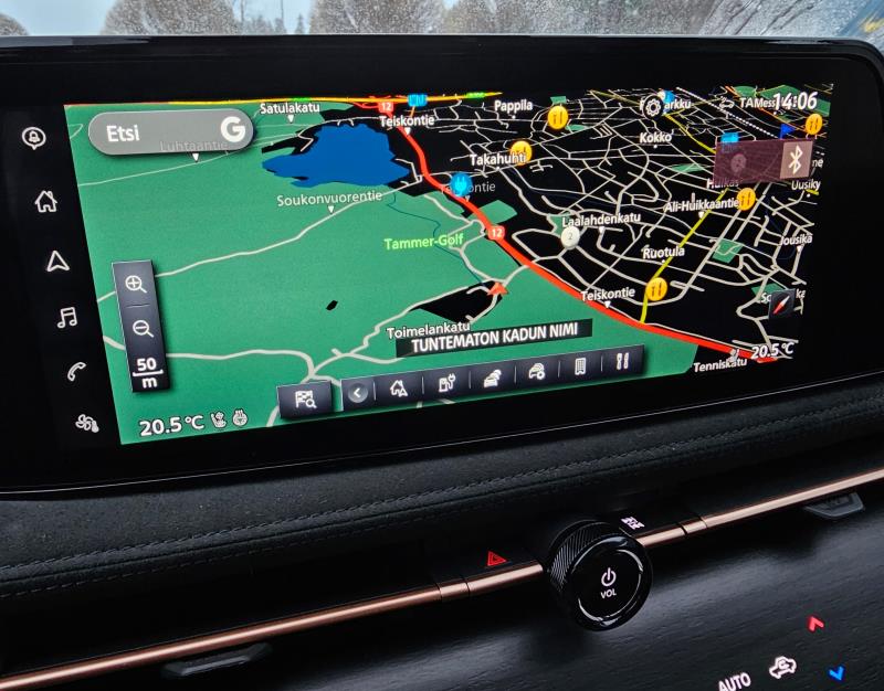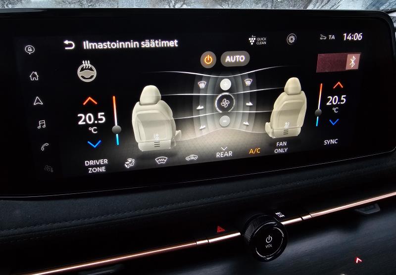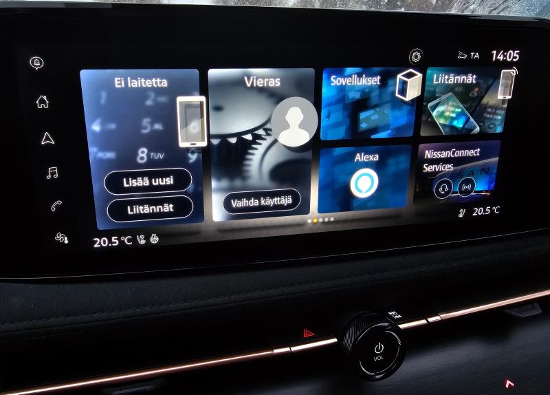 Mutta, yksi osa-alue, jossa Nissan on kyllä suoraan sanottuna hieman muita jäljessä, on digitaalinen puoli. Jos ajatellaan vaikka Ariyan keskinäyttöä, sen takana oleva käyttöjärjestelmä ja näytön tarkkuus ovat selkeästi perässä mitä tulee esimerkiksi Rellun tai Volvon vastaaviin (jostain Teslasta nyt puhumattakaan). Ja tämä on suuri sääli, koska tuolla digitaalisellakin puolella on monesti iso merkitys ainakin nuoremmalle kuljettajakatraalle, ovathan he tottuneet operoimaan vaikka minkälaisten digitaalisten välineiden kanssa jo pienestä pitäen. Tietyllä tapaahan on käynyt myös niin, että auton sähköisyyden oletetaan nykyään olevan jonkinlainen lupaus siitä, että myös digitaalisuus on viety autossa toiselle tasolle (tästä on taas Teslaa kiittäminen tai syyttäminen). Kun tämä lupaus ei sitten täysin toteudukaan, saattaa kuluttaja kokea pettyvänsä. Onneksi on myös meitä itseni kaltaisia, joille digitaalisuus ei ole kaikki kaikessa (ainakaan autoissa) ja jotka arvostavat paljon esimerkiksi fyysisiä painikkeita, niitä tästä Ariyasta nimittän löytyy ainakin jokunen. Keskinäytön alapuolelta löytyy esimerkiksi iso, fyysinen säädin äänenvoimakkuudelle ja sen alapuolelta taas useampi fyysinen painike ilmastoininnin säädölle ja etu- sekä takalasin lämmitykselle (kyse on ehkä enemmänkin jonkinlaisesta painuvasta kosketuspaneelista kuin varsinaisista ulkonevista painikkeista, mutta tuntuma on joka tapauksessa saman kaltainen kuin painikkeissa).