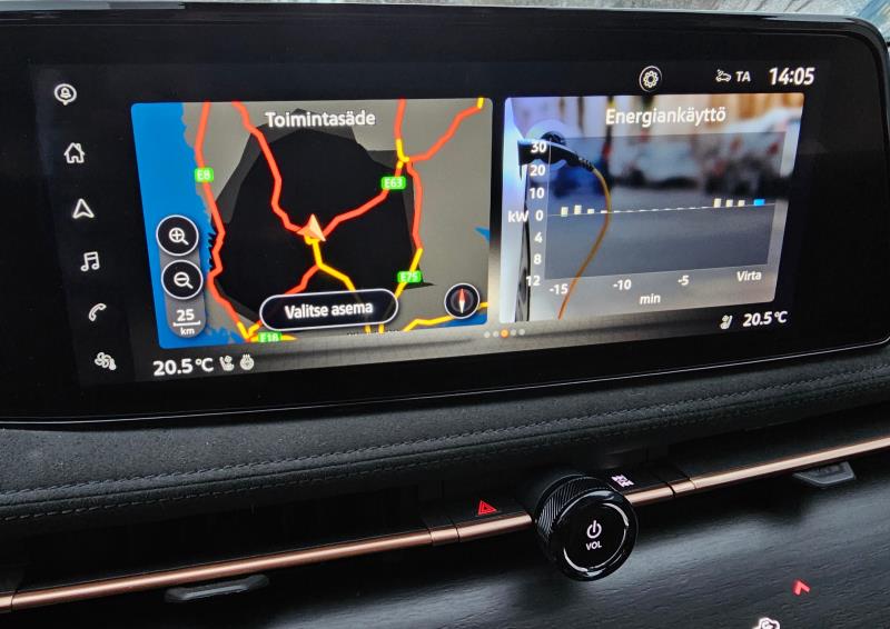 Sähköautoissahan meiltä kiinnostaa luonnollisesti aina se kyseisen auton range. Tein Ariyalla range-testin toisena koeajopäivänä (jolloin keliolosuhteet olivat haasteelliset, kuten jo mainitsinkin) ja ajelin Lahdesta Tampereelle sekä takaisin. Aikaisin aamulla lähtiessä akun kapasiteetti oli 83-prosenttia ja rangeksi auto näytti 277 kilometriä. Lämpötila oli nollan paikkeilla ja auto oli seissyt koko yön ulkona. Tein visiitin Tampereen keskustassa ja lähtiessäni ajelemaan takaisin Lahteen päin, oli akun kapasiteetti 44-prosenttia ja jäljellä olevaksi rangeksi ajotietokone näytti 152 kilometriä. Auton aamulla antamiin kapasiteettilukemiin ja range-arvioon saattoi siis luottaa hyvillä mielin ja jäljellä olevan rangen olisi ainakin periaatteessa pitänyt riittää koko paluumatkalle (keli oli tässä vaiheessa kolmen asteen verran plussan puolella ja akkukaan ei ollut enää kylmä). Mutta, sanontahan kuuluu, että pessimisti ei pety. Siksi en uskaltanutkaan ajaa akkua aivan tyhjäksi, vaan pysähdyin takaisintulomatkalla kauppakeskus Tuuloselle lataamaan akkua muutamaksi minuutiksi. Tuuloselle tultaessa akun kapasiteetti oli itse asiassa 19-prosenttia ja sieltä lähtiessä 29-prosenttia (jolla sitten selvisinkin takaisin Lahteen varsin mallikkaasti).