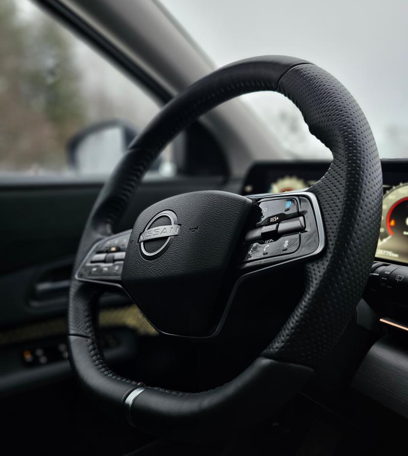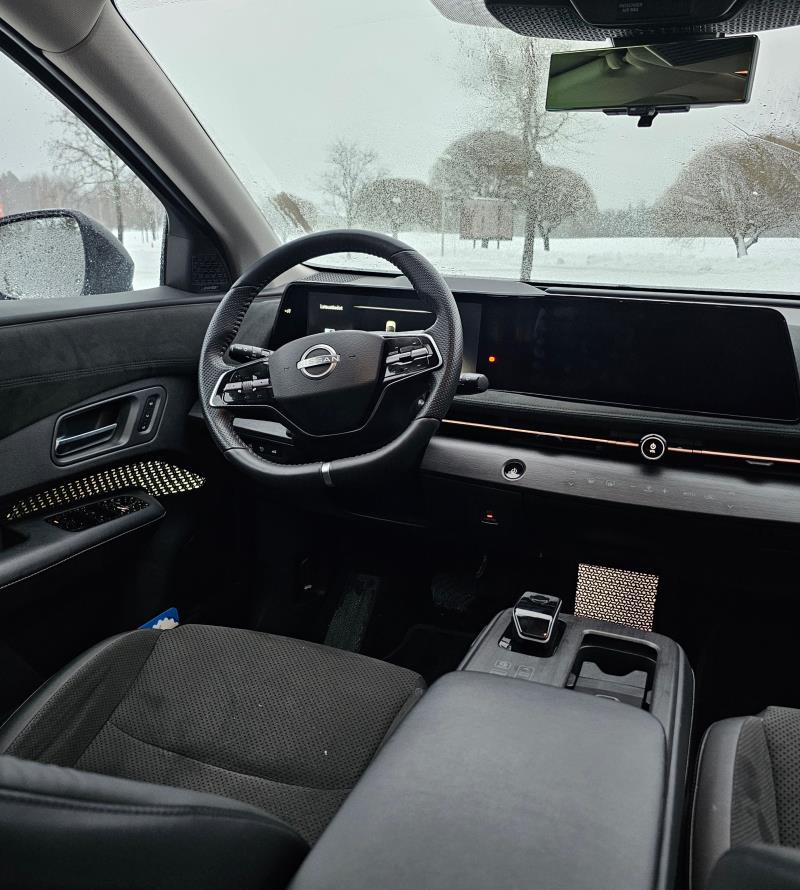 Itselleni autoissa merkitsee aina eniten ajettavuus ja yleinen ajotuntuma. Nissanin tapauksessa kävi nopeasti ilmi, että auton suurin vahvuus on ehdottomasti ajettavuusrintamalla. Eli kyllä sen huomaa, että Nissanilla on pitkä historia takanaan autonvalmistajana. Ariyahan on itse asiassa todella hyvä auto ajaa, etenkin nelivetoisena (jollainen koeajoversiokin oli). Keliolosuhteet toisena koeajopäivänä olivat kaikkea muuta kuin ihanteelliset; oli loskaa, jäätä ja jonkinlaisena kirsikkana kakun päällä vieläpä jäistä tihkusadettakin. Siinä missä muut tuntuivat järjestäen ajavan supervarovaisesti ja selvää alinopeutta, saattoi Ariyalla ajella normaalisti rajoitusten mukaan, ilman että esimerkiksi liukkauteen olisi tarvinnut kiinnittää sen enempää huomiota. Ohjaus tuntui sopivan kevyeltä ja tunnokkaalta, ja ajaminen oli helppoa niin maantiellä kuin kaupungissakin (kääntösädekin oli varsin pieni, eli voidaan puhua kokoisekseen ketterästä menopelistä, jolla varmasti pärjää suuremmankin kaupungin hulinassa ja ahtaissa paikoissa). Alustakin tuntui varsin tasapainoiselta ja mukiinmenevältä, jonkinlaiselta yhdistelmältä mukavuutta ja pientä sporttisuutta.