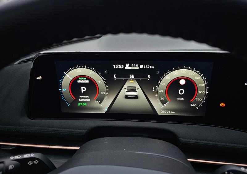 Lisävarusteiden osalta Ariyalla on pullat hyvin uunissa, ainakin mitä tulee koeajoversioon. Ajamastani autosta löytyi esimerkiksi 360 asteen kamerajärjestelmä, avattava lasikatto, BOSE 10 kaiutin-järjestelmä (joka kuulosti oikein hyvältä), tuulilasiin heijastuva HUD-näyttö ja älykäs taustapeili. Älykäs taustapeili on itse asiassa poikkeus mitä tulee äsken kommentoimaani digitaaliseen puoleen, sillä se on jotakin sellaista, mitä ei vielä kovin monesta autosta löydy.
