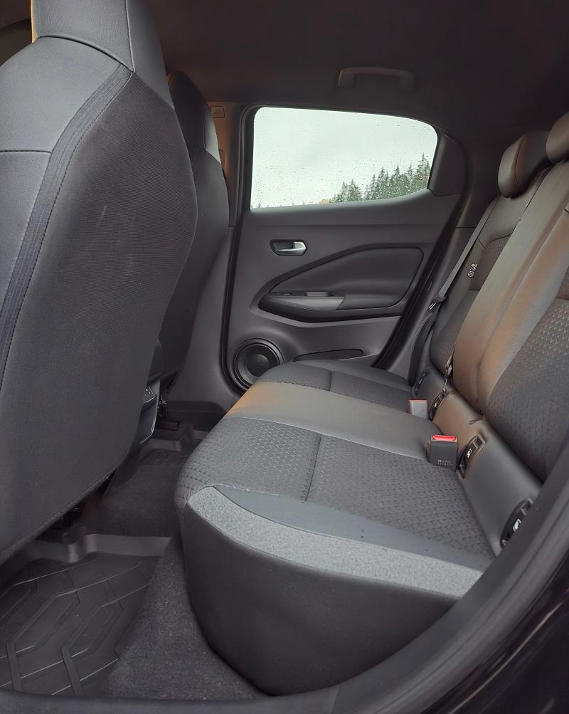 Edessä saa nimittäin jopa tällainen yli 190-senttinen kuljettaja suhteellisen hyvän ajoasennon ja toisin kuin esimerkiksi uuden Renault Symbioz -mallin kohdalla, Jukessa saa penkin laskettua tarpeeksi alas.