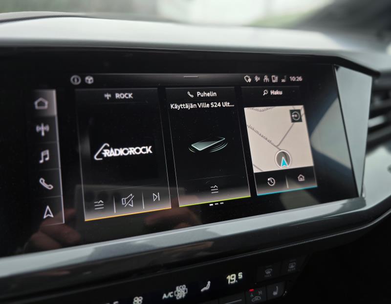 Tekisi mieli sanoa, että sisällä sen huomaa, että kyseessä on jo kolme vuotta vanha auto, mutta mitä olen nähnyt videoita esimerkiksi Q4 e-tronin viime vuoden vuosimallista, en tiedä pitääkö tämä väite täysin paikkansa. Esimerkiksi keskinäyttö, joka ei visuaaliselta ilmeeltään ja käyttöliittymältään edusta mielestäni enää tekniikan viimeisintä huutoa, on samanlainen viime vuoden vuosimallissa. Joten, ehkä tyydyn pikemminkin sanomaan vain, että tämän osalta Audi on kyllä jonkin verran takamatkalla moniin muihin automerkkeihin verrattuna. Myös yhden toisen seikan osalta voisi sanoa, että kyseessä ei ole aivan tuore vuosimalli. Nimittäin, fyysisiä painikkeita tämän auton keskikonsolista löytyy jopa suhteellisen paljon. Mutta, tämä ei missään nimessä ole mikään valitus, sillä olen kunnollisten painikkeiden suuri ystävä. Autoiluun liittyvien oheistoimintojen tekeminen, kuten esimerkiksi ilmastoinnin säätäminen, on vain niin paljon helpompaa fyysisillä painikkeilla.