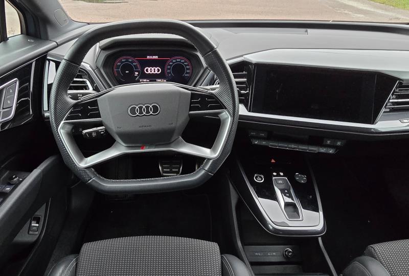 Istuintilat ovat Q4 e-tronissa kohdallaan. Isäni on tavannut aina sanoa, että saksalaisen auton tunnistaa siitä, että kuljettaja saa sellaisessa hyvän ajoasennon. Tämä väite pitää hyvin paikkansa myös tämän Audin kohdalla. Hyvän ajoasennon löytäminen on helppoa ja sporttipenkitkin ovat oikein mukavat.