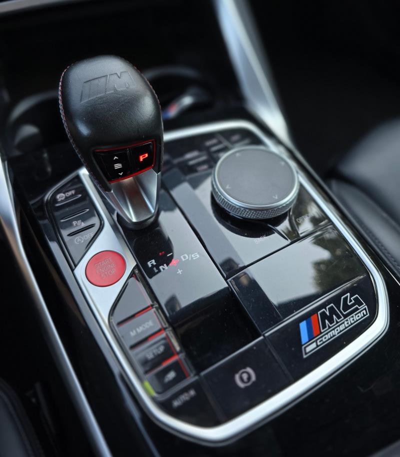 Mitä tulee vaihteistoon, M4:sta löytyy 8-vaihteinen M Steptronic Sport -vaihteisto, joka tarjoaa sekä automaattisen että manuaalisen vaihtoehdon. Kuljettaja voi milloin vain vaihdella näiden kahden välillä, omien mieltymystensä mukaisesti. Mutta, eihän siitä mihinkään pääse, että niin erinomaiselta kuin M4:n automaattitilassa tuntuukin, pääsee auto oikeuksiinsa eritoten manuaalitilassa. Vaihteenvaihdot tapahtuvat nopeasti ja sujuvasti, ja siinä vain on jotain todella tyydyttävää kun pääsee itse napsuttelemaan rattivaihteita. M Steptronic Sport ei ole kaksoiskytkin vaihteisto, kuten joku saattaa äkkiseltään veikata, vaan sen sijaan kyseessä on momentinmuuntimella varustettu automaattivaihteisto. Siinä käytetään siis momentinmuunninta kytkimen sijaan.