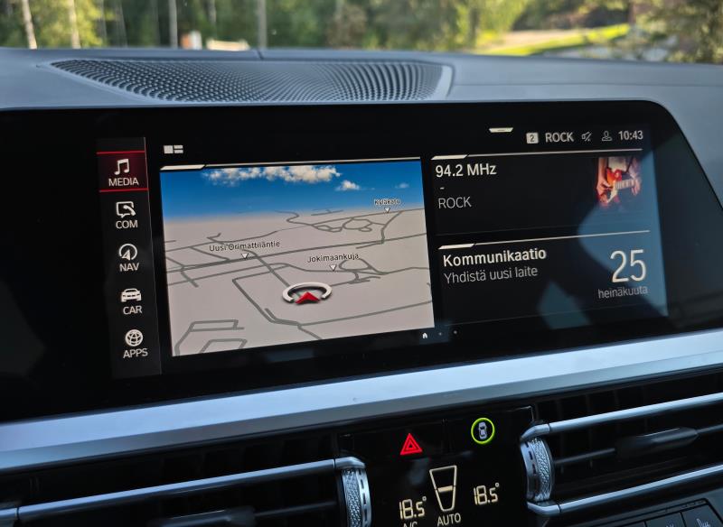 Keskinäyttö on 10,25 tuuman kokoinen ja se on ilmeensä puolesta ehkä jo hivenen aikansa elänyt, vaikka sinällään ihan hyvin toimiikin. Jos ei halua operoida BMW:n oman järjestelmän kanssa, tukee tämäkin auto Android Auto ja Apple CarPlay -palveluita.