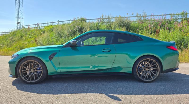Tästä voidaankin hypätä M4:n varusteisiin. Tästä koeajoyksilöstä löytyy esimerkiksi adaptiivinen M Suspension -alusta, hiilikuitukatto, sähkötoiminen lasikattoluukku, 21-tuuman amerikkalaiset Vossen-merkkiset luksusvanteet, erityisistä karjaroduista lähtöisin oleva korkealaatuinen Merino-nahkaverhoilu, M Sport -urheiluistuimet ja laserajovalot. Erikseen mainittakoon vielä auton vihreä metalliväritys, joka kulkee nimellä ”Isle of Man Green” ja joka kyllä näyttää pirun tyylikkäältä, etenkin kirkkaassa auringonvalossa.