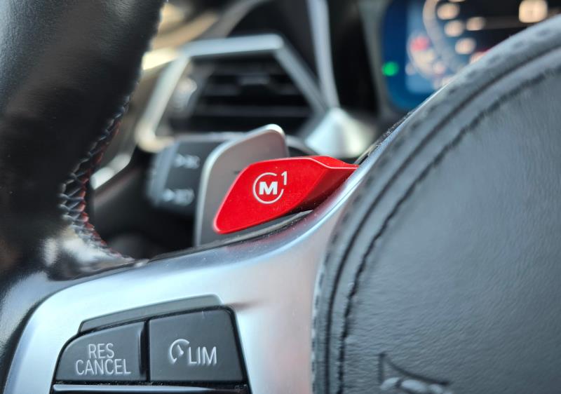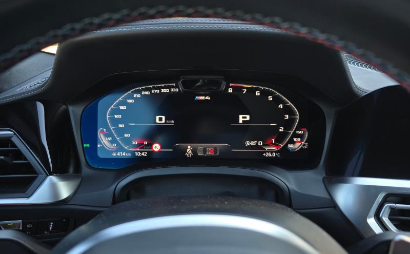M4 tarjoaa paljon mahdollisuuksia myös konfigurointiin. Tässä kohtaa peliin astuvat aiemmin mainitsemani punaiset M-painikkeet ratin molemmin puolin. Moottoria, vaihteistoa, alustaa, ohjausta, jarruja ja luistonestoa pääsee kaikkia säätämään haluamallaan tavalla ja esimerkiksi vasemmalla olevan M1-painikkeen taakse voi tallentaa arkisempaan ajoon sopivat säädöt ja oikealla olevan M2-painikkeen taakse puolestaan urheilulliseen ajoon sopivat, selvästi aggressiivisemmat säädöt. Esimerkiksi moottorin osalta pystyy valitsemaan jonkun kolmesta seuraavasta vaihtoehdosta: Efficient, Sport tai Sport Plus. Lisäksi autosta löytyy keskikonsolista erikseen vielä M Mode -painike, jonka takaa löytyy kolme eri ajotilaa: Road, Sport ja Track. Road-tilassa kaikki ajoavustimet ovat toiminnassa, Sport-tilassa osa niistä kytkeytyy pois ja Track-tilassa kaikki ajoavustimet kytkeytyvät pois. Track-tila on nimensä mukaisesti suunniteltu ainoastaan rata-ajoon.