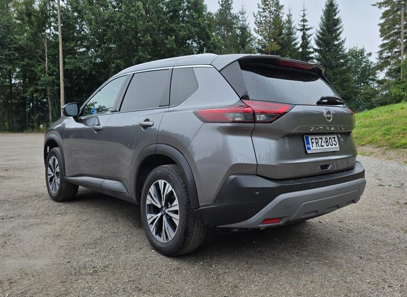 Tsekataanpa sitten auton ulkonäkö. Vuoden 2024 X-Trail noudattaa Nissanin viime vuosilta tuttua muotokieltä ja se näyttää sinällään ihan hyvältä. Mielestäni keulan ilme on ollut nyky-Nissaneissa varsin toimiva yhdistelmä japanilaisuutta ja jonkin sortin futurismia. Keula on rohkea, muttei toisaalta liian erikoinen. Perä on jokseenkin laatikkomainen, mutta kokonaisuus kuitenkin toimii. Jos on mieltynyt nyky-Nissanien ulkoiseen olemukseen, miellyttää tämäkin auto varmasti.