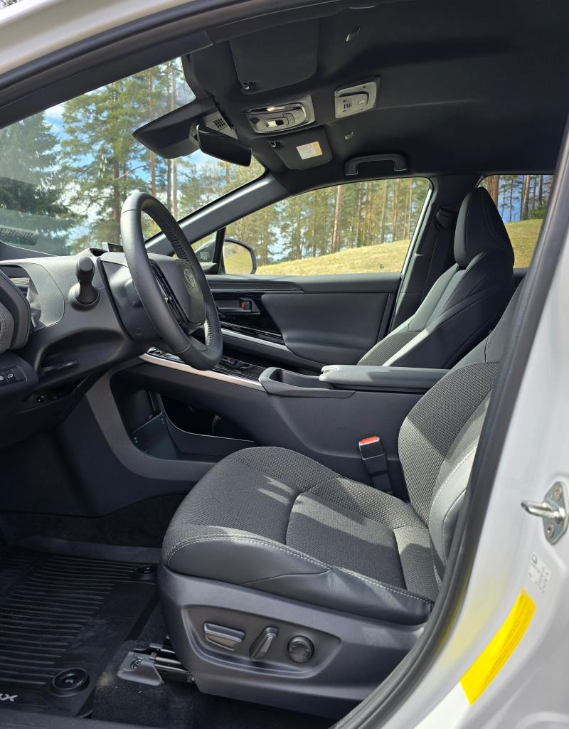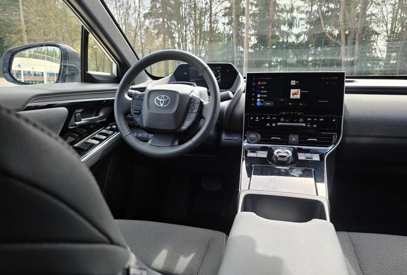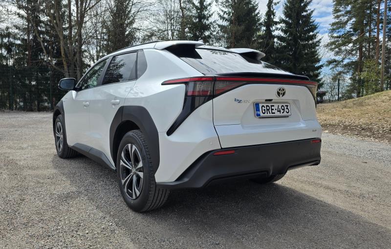 Mainittakoon, että ajamani koeajoyksilö on nelivetoinen ja tehoa siitä löytyy yhteensä 218 hevosvoiman verran. Autossa oleva nelivetojärjestelmä on kehitetty niin, että siinä on erilliset 109 hepan (80 kW) tehoiset sähkömoottorit etu- ja taka-akseleille. Siinä on myös kehittynyt nelivedon ohjaus, joka mahdollistaa oikeanlaisen ajo-ohjelman ajoalustasta riippuen. Vaikka edellä mainittu kokonaistehon määrä ei kuulosta kovinkaan suurelta, auto tuntuu kuitenkin kiihtyvän oikein ripeästi ja kiitos tästä kuulunee pitkälti tuolle edellä mainitulle nelivetojärjestelmälle, jonka Toyota on kehittänyt yhteistyössä Subarun kanssa. Jos tarkkoja ollaan, Toyota on itse asiassa kehittänyt koko bZ4X:n yhteistyössä Subarun kanssa ja autolta löytyy teknisesti identtinen sisarmallikin, eli Subaru Solterra.