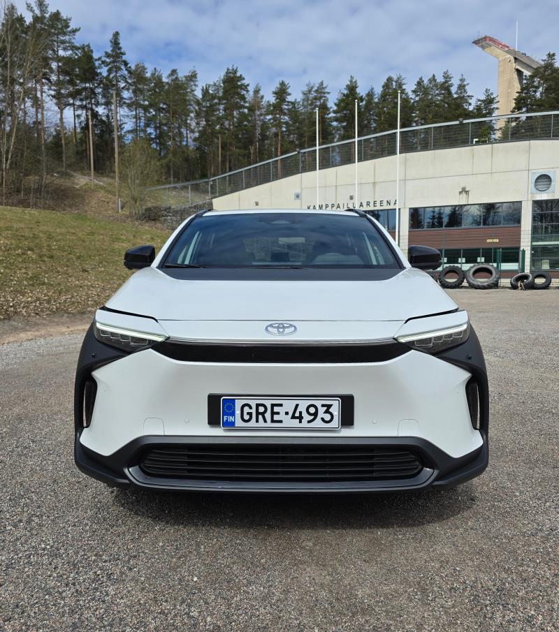 Vielä toistaiseksi Toyotalta löytyy vain yksi täyssähköinen malli henkilöautojen puolelta, nimittäin vuonna 2022 markkinoille saapunut bZ4X. Siinäpä muuten vasta jännä mallinimi, eikä ehkä se markkinointiystävällisin. Nyt koeajamani bZ4X on käytetty, mutta tuntuu jokseenkin väärältä puhua käytetystä autosta, kun kyse on viime vuoden malliversiosta, jolla on ajettukin vain rapiat 4 tuhatta kilometriä, eli ei siis käytännössä lainkaan.