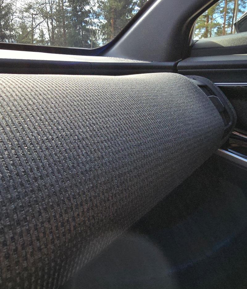 Kojelaudassa on jonkinlainen karkea kangaspäällyste mikä näyttää ihan mukiinmenevältä, mutta en ole aivan varma pidänkö kovasti sen sormituntumasta. Mutta, ehkä sitä ei ole tarkoituskaan hiplailla koko ajan.
