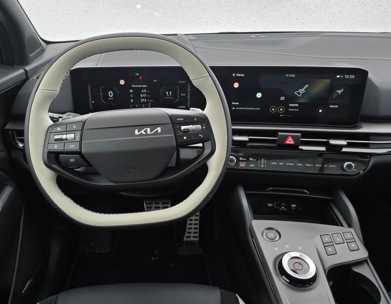 Ohjaamon ilme on pitkälti samanlainen kuin EV-malleissa, joissa se on ehkä vielä hieman futuristisempi muun muassa materiaalivalintojen ja värityksensä osalta. Sportagessa kokonaisuus on itse asiassa hyvinkin selkeä ja looginen. Pidän siitä, että fyysisiä painikkeita löytyy yllättävänkin paljon niin keskikonsolista, ratista kuin ovistakin. Tämä kun ei ole mikään itsestään selvä asia nykypäivänä. Ilmastoinnin säädöt ja vastaavat asiat hoituvat puolestaan keskikonsolista löytyvien hipaisupainikkeiden kautta. Kia ei ole siis liiaksi piilottanut auton varsinaisia toimintoja keskinäytön taakse, ja hyvä niin. Ajaessa on aina paljon mukavampi, kun auton perustoiminnot löytyvät nopeasti ja helposti, ilman turhaa näytön kanssa häseltämistä.