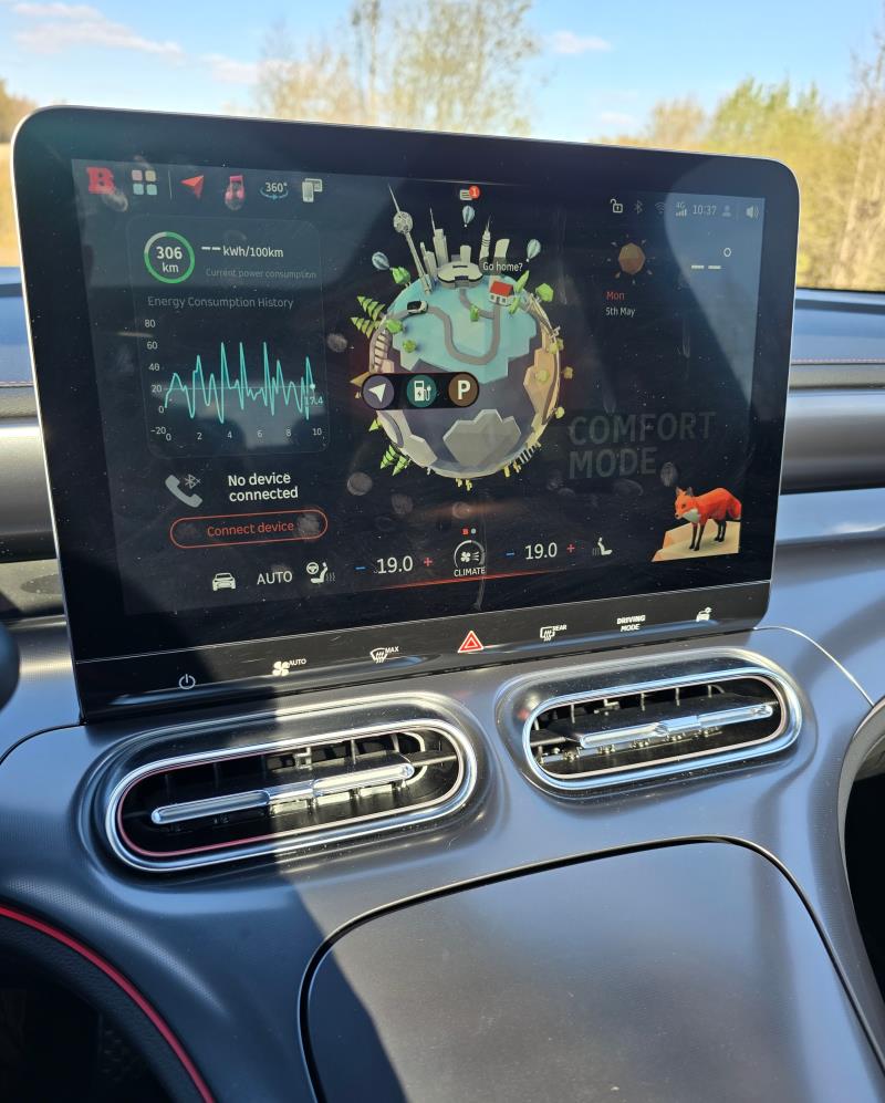 Jos katsotaan varustepuolta, autosta löytyy vakiona muun muassa sellaisia varusteita kuin panoraamakattoikkuna, 360-kamerajärjestelmä, mukautuva vakionopeudensäädin, kuolleen kulman varoitin, liikennemerkkien tunnistus ja akun esilämmitys. Siinä siis vain joitain mainitakseni. Brabus-mallista löytyy lisäksi myös Beats-audiojärjestelmä ja pakko sanoa, että ainakin bassot kuulostavat pirun hyviltä.