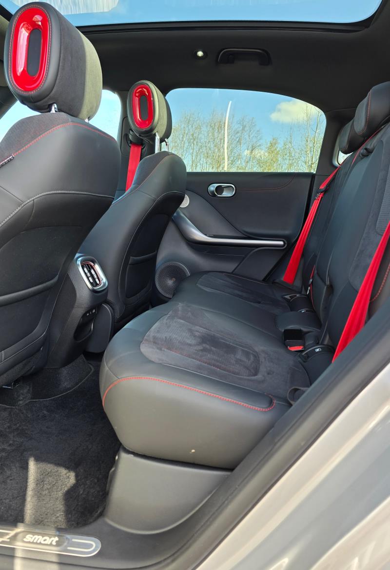 Nyt kun puhutaan suhteellisen kompaktista menopelistä, niin monia varmasti kiinnostaa auton istuintilat. Edessä on sähköiset säätimet istuimille ja penkin saa pitkälti haluamaansa asentoon ja ajoasennon hyväksi, jopa itseni kaltainen 194-senttinen kuljettaja. Auto ei tunnu edessä istuessa lainkaan ahtaalta, mikä oli oma pelkoni Smartin kohdalla etukäteen ajateltuna.