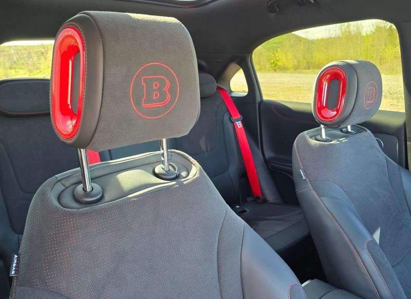 Palataanpa sitten takaisin estetiikkaan. Sisälle astuessa huomio kiinnittyy ensimmäisenä Brabusin punaisiin yksityiskohtiin, jotka antavat autolle kyllä oman, pikantin säväyksensä. Eli Brabusin kädenjälki ulottuu tosiaan myös auton visuaaliseen antiin ja hyvä niin.