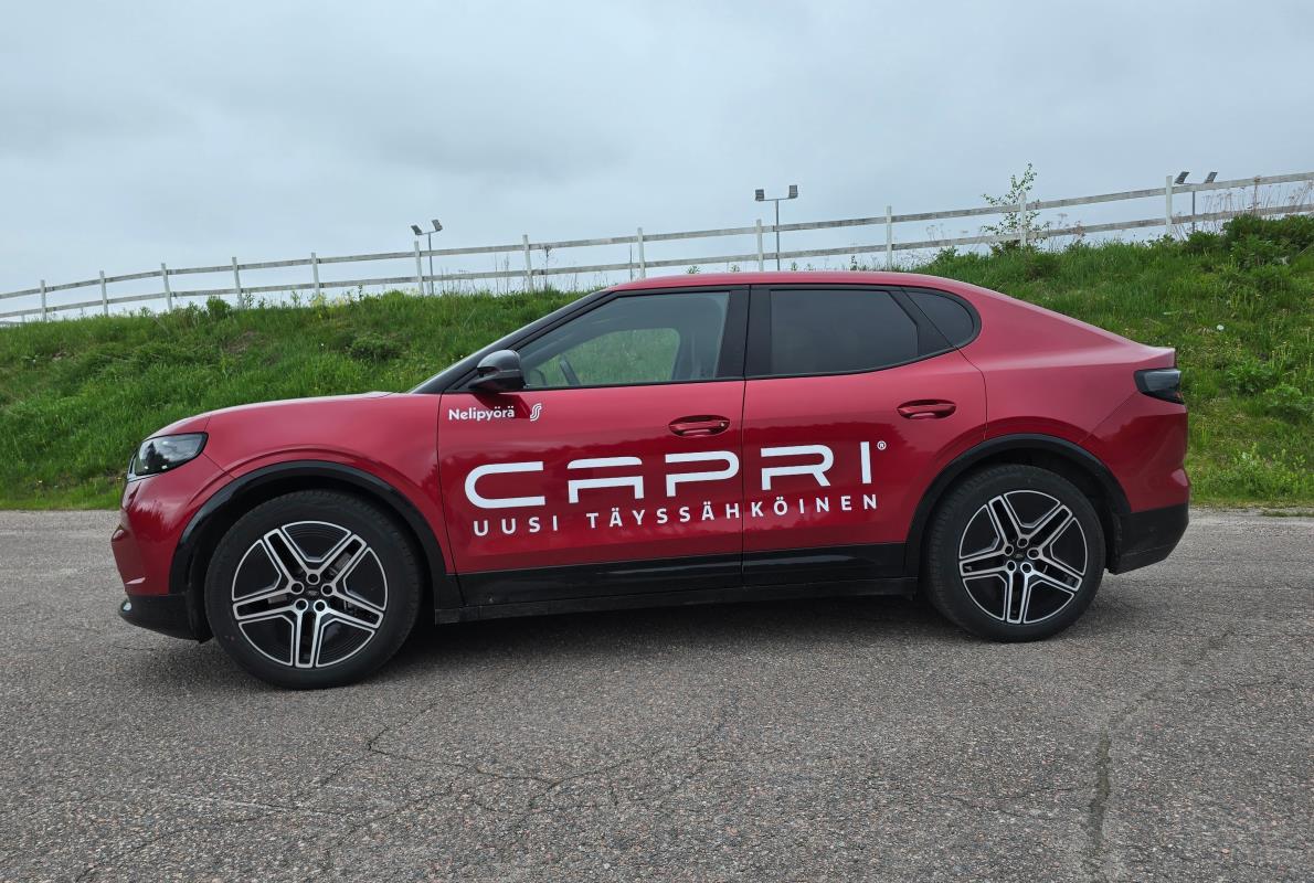 Capri on lähes kaikilta osin pitkälti sama auto kuin Explorer, tosin istuintilaa siinä on hivenen enemmän kiitos kokonaispituutensa, mutta perehdytään siihen hetken päästä tarkemmin. Suurin eroavaisuus istuintilojen lisäksi liittyy auton ulkoiseen habitukseen. Capri on tyylikkään näköinen ja linjakas menopeli, ja omaan silmääni vielä asteen nätimpi kuin esimerkiksi Explorer, joka ei sekään näyttänyt yhtään hullummalta. Se ei ole välttämättä kovin räiskyvä tai persoonallinen, mutta voi auto näyttää hyvältä ilman että se olisi jotenkin erilainen. Tosin, niin Caprin kuin Explorerinkin kohdalla hivenen häiritsee seikka, mikä on yhteistä monille sähköautoille, eli etusäleikön puute. Ja tiedän, että etusäleikölle ei ole sähköautoissa varsinaista tarvetta, mutta voisi sellainen sähköautoissa olla edes kosmeettisena elementtinä. Se vain tuo tietynlaista rouheutta ja särmää ulkonäköön. Se on vähän sama kuin mitä rusetti on smokille. Se kruunaisi niin sanotusti kokonaisuuden.