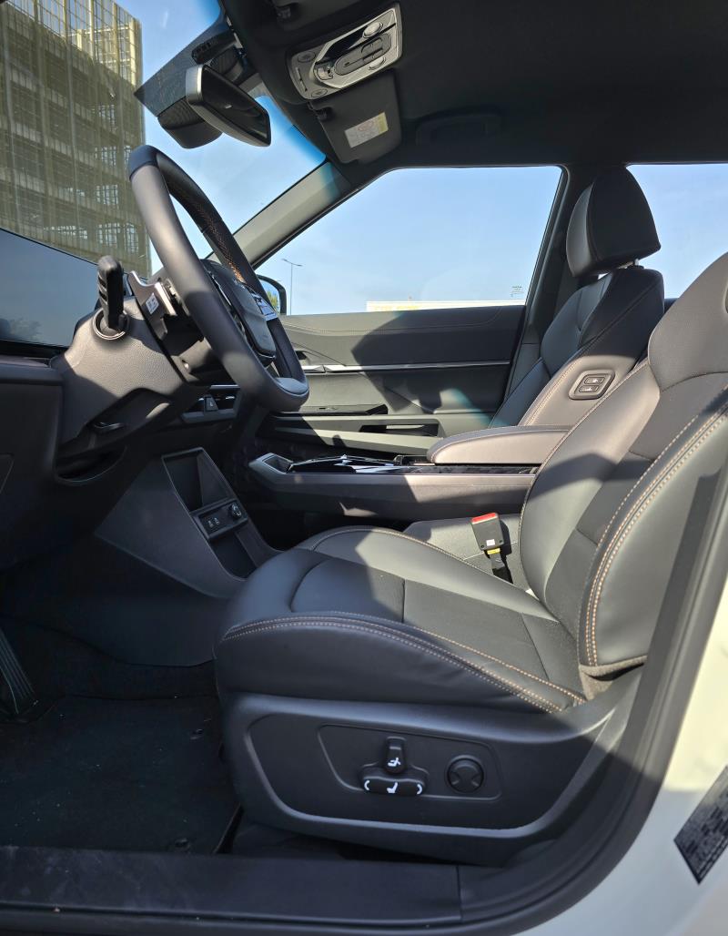 Musso EV on 5-paikkainen ja istuintilat siinä ovat erittäin hyvät. Etupenkeillä on mukavan väljät tilat ja takapenkilläkin riittää jalkatilaa kattavasti. Mainittakoon, että takapenkkien alta löytyvät lisäksi kiskot, eli penkkiriviä pystyy hieman liikuttamaan.