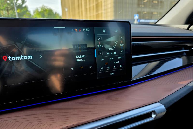 Mittaristo ja keskinäyttö ovat molemmat 12,3 tuumaisia kooltaan ja ne on integroitu yhdeksi, saumattomaksi kokonaisuudeksi. Suuri osa toiminnoista on myös viety keskinäytön taakse. Sen käyttöliittymä on melko pelkistetty ja ainakin jokseenkin helppokäyttöinen. Mainittakoon, että autosta löytyy valmiina myös navigointi. Pientä miinusta täytyy tosin antaa itse näyttöpaneelista, koska parempiakin on monissa nykypäivän autoissa nähty. Paneeli nimittäin heijastaa jonkin verran auringonvaloa, mikä viittaa siihen, että sen osalta on säästetty kustannuksissa. Mutta, toisaalta taas, ei auton hintakaan kovin paha ole, joten sekin on hyvä pitää aina mielessä arviointia tehdessä.
