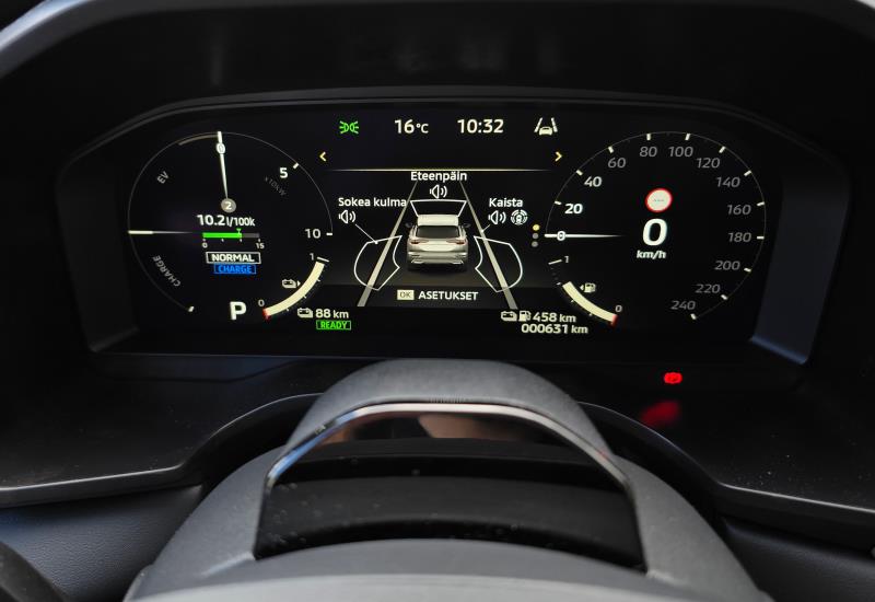 Fyysisten painikkeiden lisäksi autosta löytyy myös 12,3 tuuman digitaalinen mittaristo ja samankokoinen kosketusnäyttö keskeltä. Keskinäytön takaa löytyvä, Mitsubishin oma käyttöjärjestelmä tosin on auttamattomasti vanhentuneen oloinen. Näytön käytössä esiintyy ajoittain pientä viivettä ja sen visuaalinen ilme ei ole selvästikään ihan tätä päivää. Järjestelmästä löytyvä navigointipalvelukaan ei ole täysin ajan tasalla, vaikka näyttääkin esimerkiksi ajankohtaiset polttoainehinnat läheisillä huoltoasemilla.