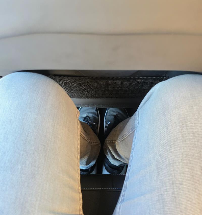 Takanakin jalkatilat ovat varsin kompaktit, mutta olen toisaalta positiivisesti yllättynyt, etteivät ne ole liian tukalat. Etupenkin ollessa omilla säädöilläni, takana pystyy silti istumaan, vaikka polvet hieman etupenkkiin kiinni ottavatkin. Mutta, olo ei kuitenkaan muodostu takapenkillä liian tukalaksi. Sinällään tämä on varsin hyvä suoritus autolle, jonka akseliväli on vain 2 638 mm. Mainittakoon, että takapenkkiriviä pystyy hieman myös liikuttamaan, sillä sen alla on kiskot ja se liukuu jopa 16 senttiä suuntaansa.