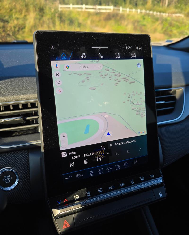 Autosta löytyy 12,3 tuuman digitaalinen mittaristo ja 12 tuuman keskinäyttö. Ne ovat ilmeeltään ja käyttöliittymältään samanlaiset kuin esimerkiksi muissakin uusissa Relluissa, eli niiden käyttöliittymänä on siis Googlen Android Automotiveen perustuva OpenR Link. Se on varsin helppokäyttöinen ja kaikin puolin kivan näköinen käyttöliittymä. Aivan kuten muistakin uusista Relluista, Symbiozistakin löytyy onneksi myös useita fyysisiä painikkeita, esimerkiksi ilmastoinnin säätämiselle. Hienoa, että ranskalaiset eivät ole hylänneet käytännöllisyyttä, vaikka historian saatossa he ovatkin joskus tehneet ratkaisuja, missä visuaalisuus on ajanut vahvasti käytännöllisyyden edelle.