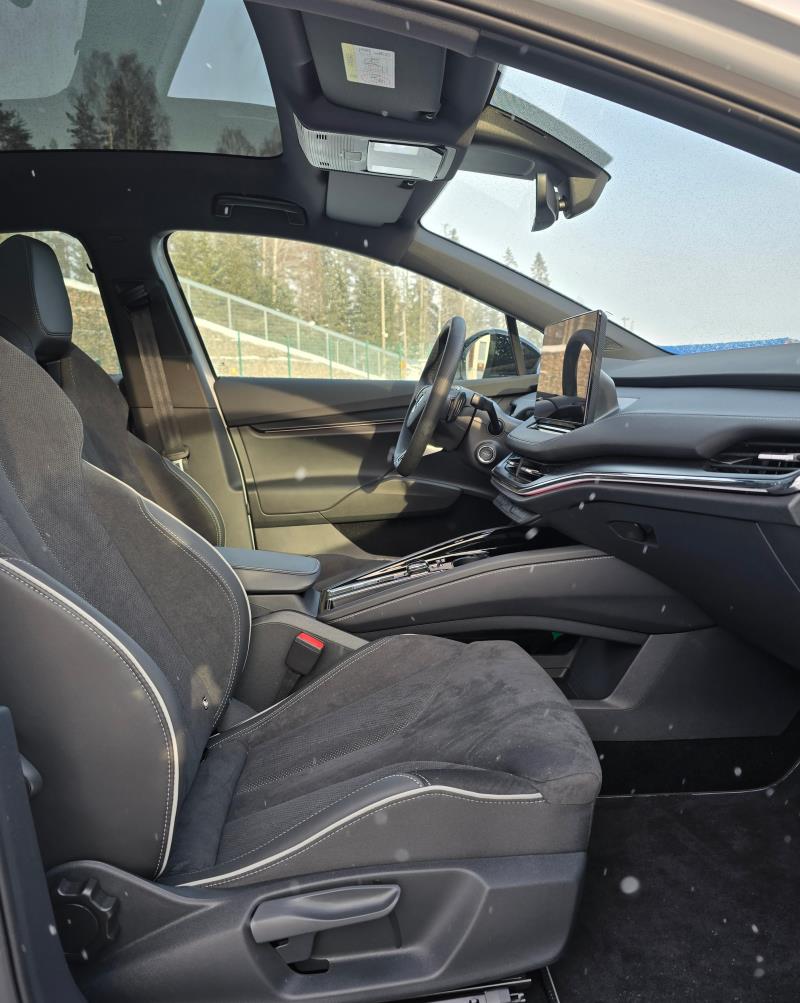 Istuintila on asia mikä kiinnostaa aina itseni kaltaista isokoipista kuljettajaa ja Enyaqista sitä löytyy oikein mukavasti. Ajoasennon osalta ei tarvitse tehdä minkäänlaisia kompromisseja, eli tshekkiläiset ovat hienosti ottaneet huomioon isompikokoiset kaverit (ja näinhän on toki ollut Skodissa jo pitkään).