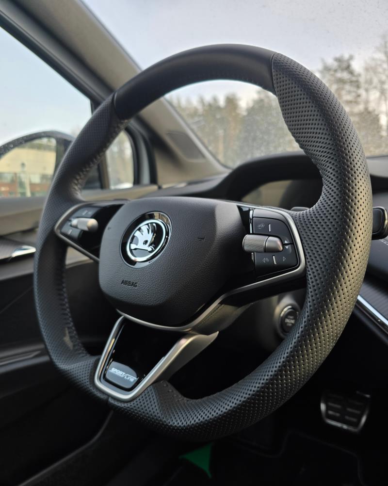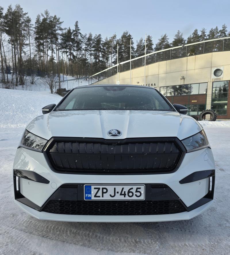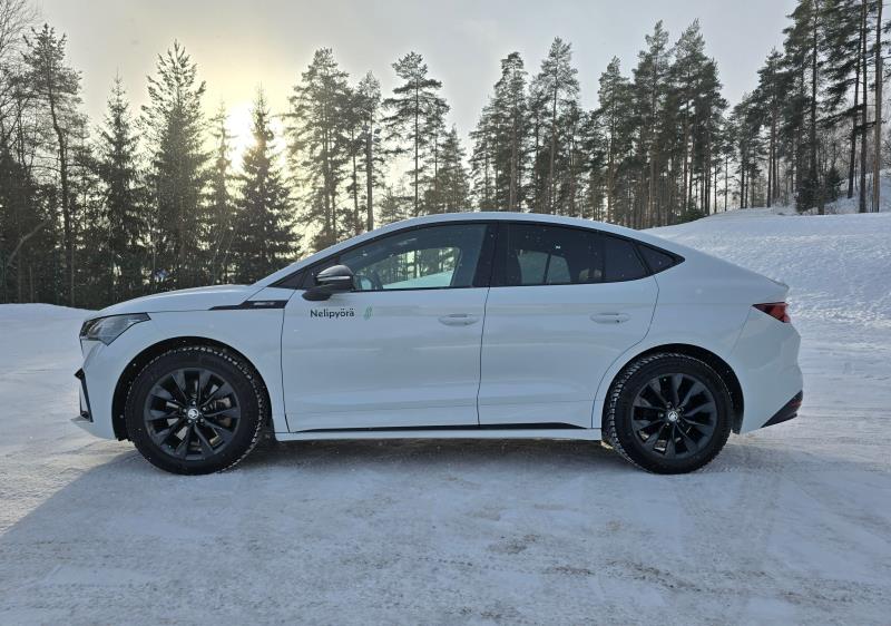 Myönnettäköön, tulen vähän jälkijunassa tässä, sillä Enyaqhan saapui markkinoille jo vuonna 2020. Couplé-mallinen Enyaq, joka itselläni oli nyt koeajossa, tuli sekin markkinoille jo vuonna 2022. Ja, aivan lähiaikoina on tulossa saataville tämän vuoden versio Enyaqista. Oli miten oli, kun Lahden Nelipyörän kautta tarjoutui mahdollisuus koeajaa viime vuoden Enyaq (85x SportLine Business), en pistänyt pahakseni. Sen verran kauan olen Enyaqia kuitenkin liikenteessä katsellut (ja salaa ihastellut). Ulkoiselta olemukseltaanhan Enyaq on oikein sporttisen ja tyylikkään näköinen menopeli. Siinä on tietynlaista asennetta ja rouheutta, ja se seisoo tukevasti omilla jaloillaan. Sen ei todellakaan tarvitse nöyristellä ”isoveljensä” Volkswagenin vierellä, vaan pikemminkin päinvastoin. Ulkonäöllisesti Enyaq pieksee esimerkiksi ID.4:n mennen tullen, ainakin minun mielestäni. Ja, täytyy sanoa, että Enyaq viehättää itseäni etenkin coupé-mallisena. Noissa coupé-perissä vain on sitä jotain, jonkinlaista ajatonta tyylikkyyttä. Yksi hieno yksityiskohta Enyaqin ulkonäössä on se, että tshekkiläiset ovat päättäneet laittaa autoon etusäleikön, vaikkei sellaiselle sähköautoissa olekaan tarvetta. Jos olen täysin rehellinen, niin osa nykypäivän sähköautoista näyttää hiukan hölmöiltä juurikin sen vuoksi, koska niistä puuttuu tuo etusäleikkö. En tiedä mikä siinä on, ehkä sitä on vain vuosien saatossa silmä sen verran tottunut noihin etusäleikköihin, että sellaisen puuttumisen huomaa heti. Sivusta katsottuna Enyaq on selkeästi SUV, korkea ja sopivan tuhti. Auton olemus on kaiken kaikkiaan ainakin jokseenkin huomiota herättävä. Kyllä tuollaisen ihan mielellään omaan kotipihaansa parkkeeraa ja saa luultavasti naapuripihoista muutaman uteliaan (ja ehkä kateellisen) katseenkin.