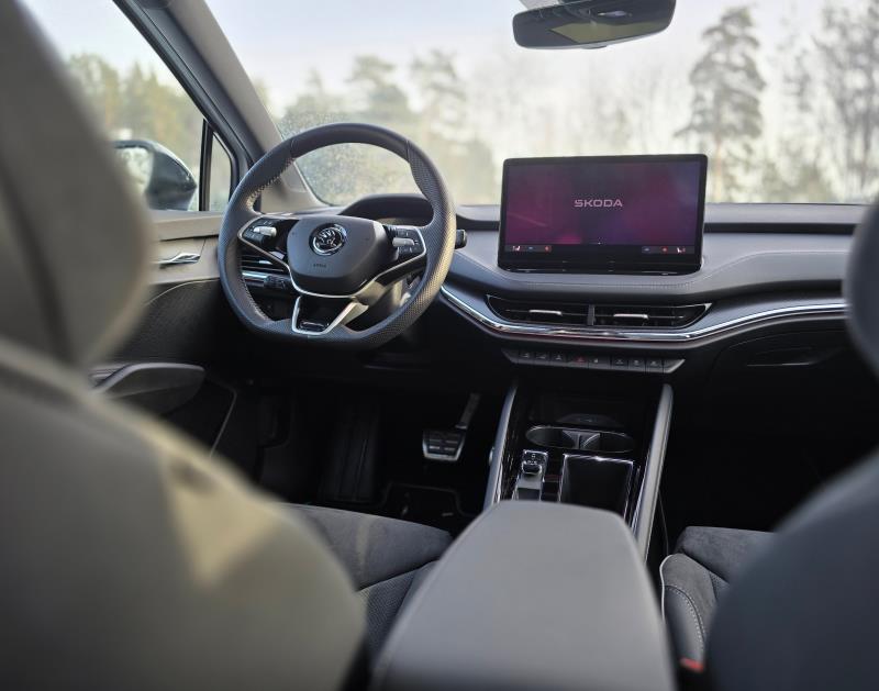 Myös sisätilat ovat Enyaqissa onnistuneet. Ne ovat selkeät, sopivan yksinkertaiset ja fyysisiäkin painikkeita löytyy. Ja kyllä, aion taas paasata teille fyysisten painikkeiden hienoudesta. Koska, kun on ajamassa ja päähän nousee ajatus esimerkiksi tuulilasinpuhaltimen aktivoimisesta, ei mene kuin sekunti ja olet onnistuneesti painanut painiketta, ilman että katseesi on juurikaan harhaillut pois tieltä. Mutta, otetaanpa sitten tarkasteluun vastaava tilanne autossa, jossa on vain kosketusnäyttö. Ensin sinun pitää luultavasti etsiä jonkin erillisen valikon takaa paikka, josta tuo tuulilasinpuhallin aktivoidaan. Kun sitten löydät sen (ja kun katseesi on jo jonkin aikaa harhaillut näytöllä tien sijasta), sinun täytyy yrittää vielä sormella osua oikeaan kohtaan näytössä (mikä saattaa olla hankalaa, jos on esimerkiksi yhtään töyssyinen tie). Ja, jos näyttö on esimerkiksi kovan pakkasen jäljiltä yhtään kohmeinen, niin se ei välttämättä edes reagoi heti kosketukseen. Fyysisten painikkeiden painaminen vain on niin paljon helpompaa ja nopeampaa, ja on sääli, että niin monet autosuunnittelijat priorisoivat nykyään estetiikan käytännöllisyyden edelle.