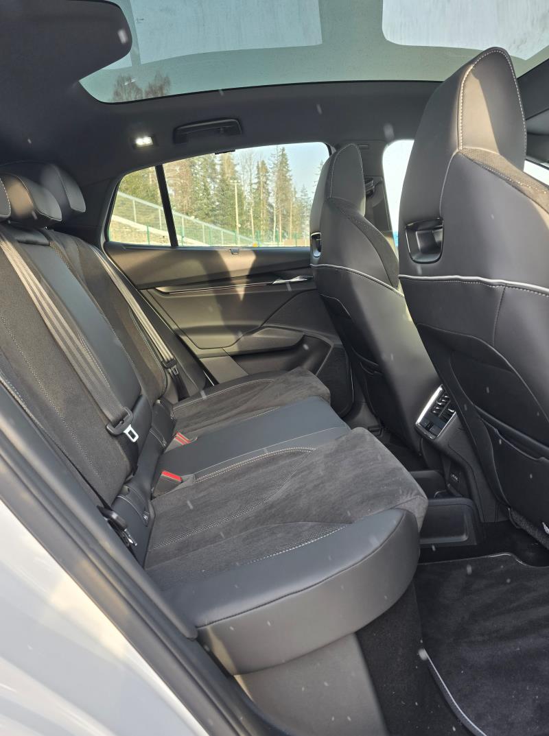 Takanakin on melko väljät tilat ja ei Enyaq ole yhtään hullumpi vaihtoehto esimerkiksi perheen pidempiä mökkireissuja ajatellen. Istumaan mahtuu helposti viiden hengen perhe ja tavaratilaakin löytyy Coupé-versiosta lähes 600 litran edestä (tarkalleen ottaen 570 litraa, eli vain 15 litraa vähemmän kuin tavallisesta Enyaqista).