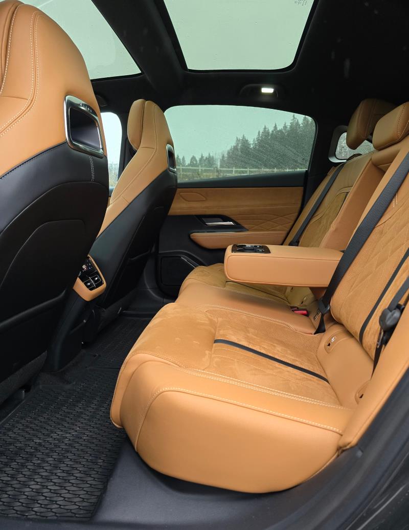 Kaikista suurimman vaikutuksen 6e tekee kuitenkin sisustansa osalta. Etenkin tällaisella vaaleanruskealla mokkanahkaverhoilulla varustettuna auton sisusta suorastaan huokuu eleganssia ja premiumin tuntua. Mokkanahkaverhoilua löytyy niin ovista, kojelaudasta, keskikonsolista kuin penkeistäkin. Tunnelmavalaistus kruunaa kokonaisuuden. Muutoin ohjaamon yleisilme on suhteellisen minimalistinen ja monien nykyautojen tapaan hyvin näyttöpainotteinen toimintojensa osalta. Fyysisisiä painikkeita ei juurikaan löydy, niitä on ainoastaan ovissa. Ratissakin olevat painikkeet ovat hipaisupainikkeita.