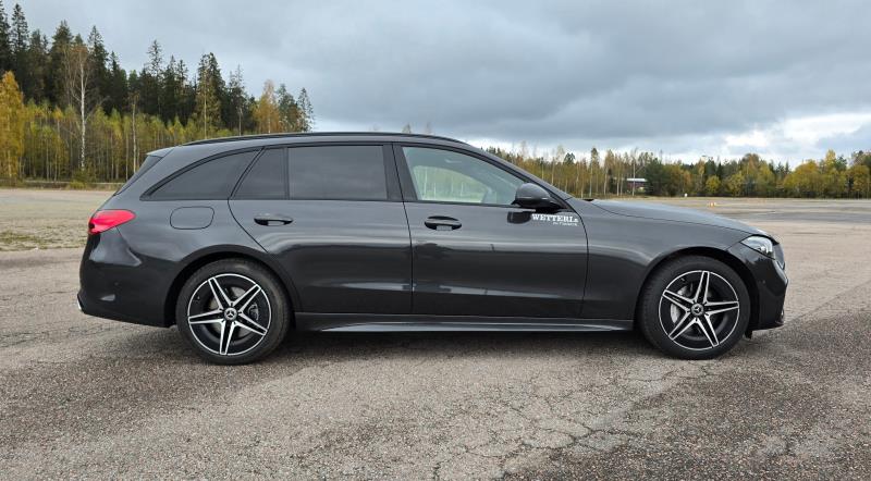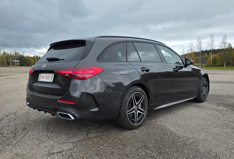 Seuraavalla osa-alueella takavetoinen C300e onneksi loistaa – nimittäin ajettavuudessa. Ohjaus on herkkää ja tunnokasta, mikä tekee ajokokemuksesta miellyttävän sporttisen. Vaikka auton kokonaispaino ylittää 2 000 kiloa, se ei tunnu ratissa, vaan auto hallitsee massaansa taitavasti. Mitä tulee puolestaan alustaan, ovat Mercedeksen insinöörit tehneet taikojaan, sillä alustatuntuma on suorastaan loistava: jämäkkä ilman, että mukavuus kärsii. Tai jos tarkkoja ollaan, eivät he mitään taikoja ole tehneet, vaan auton taka-akselille on lisätty ilmajousitus (tämä on siis vakiona lataushybridien sedan- ja farkkumalleissa). Muutos on tehty siksi, koska takana sijaitsevat akku ja sähkömoottori lisäävät auton painoa. Ilmajousitus auttaa pitämään auton tasapainossa ja mukavana myös kuormattuna.