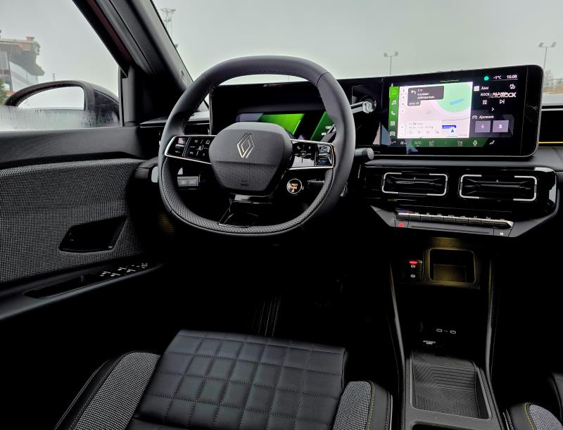 Sisältä Renault 4:n on yhtä pikantin persoonallinen kuin 5:nkin ja huomio kiinnittyy heti tyylikkäisiin yksityiskohtiin. Ovien ja kojelaudan soft-touch-materiaalit, kojelaudan keltaiset tikkaukset sekä valaistu mallinimi tuovat sisustukseen näyttävyyttä. Ajotilan mukaan vaihtuva tunnelmavalaistuskin on hieno. Kaikkien viimeaikaisten Renault-mallien ohjaamot ovat itse asiassa olleet erittäin onnistuneita kokonaisuuksia. Sisustuksesta huokuvan trendikkyyden voisi kuvitella vetoavan myös nuorempaan, niin kutsuttuun TikTok-sukupolveen.