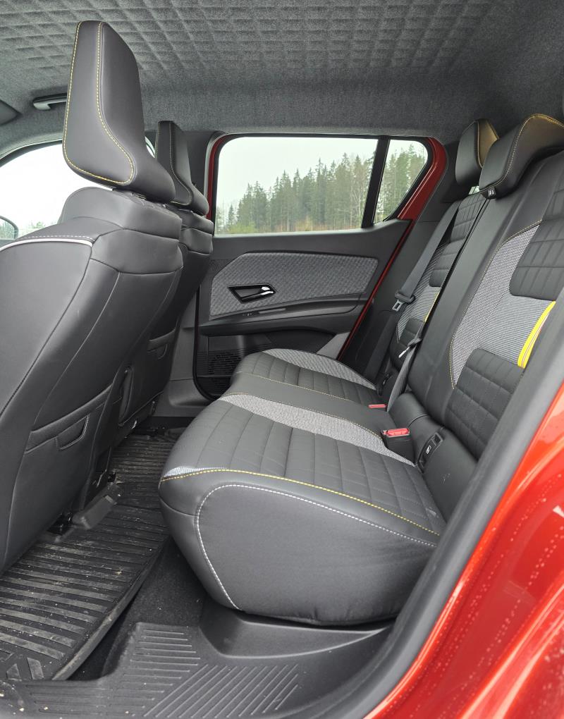Tilojen osalta pieni akseliväli tarkoittaa sitä, että takapenkillä on Renault 4:ssa hyvin ahdasta. Jos etupenkki on itseni kaltaisen, 194-senttiä pitkän henkilön säädöillä, ei takapenkillä käytännössä pysty istumaan. Näinhän oli tilanne toki myös Renault 5:n kohdalla, mutta silloin puhuttuunkin aidosta ”pikkuautosta”. Siksi odotinkin, että tilanne olisi 4:n kohdalla hivenen parempi. Auton akseliväleissä on kuitenkin eroa, mutta ei sekään tietysti aina kaikkea kerro.
