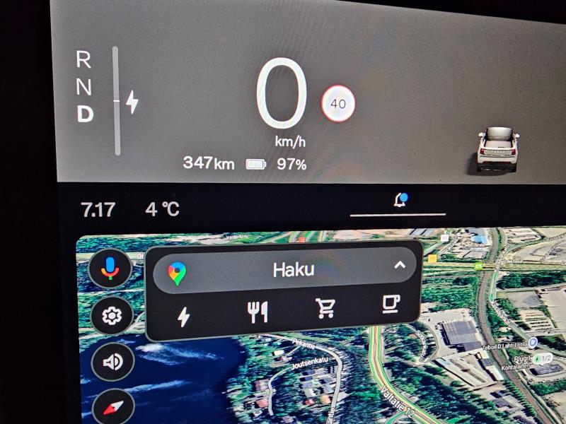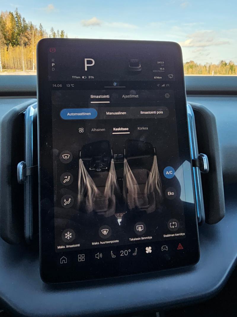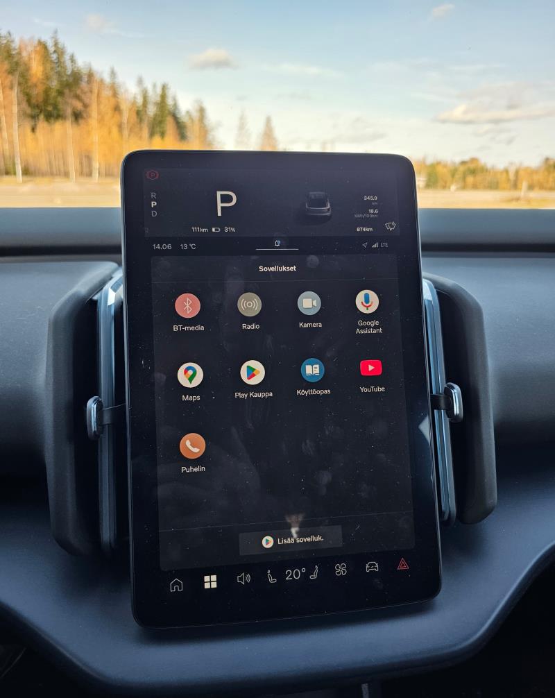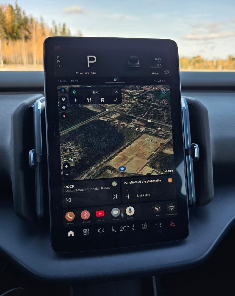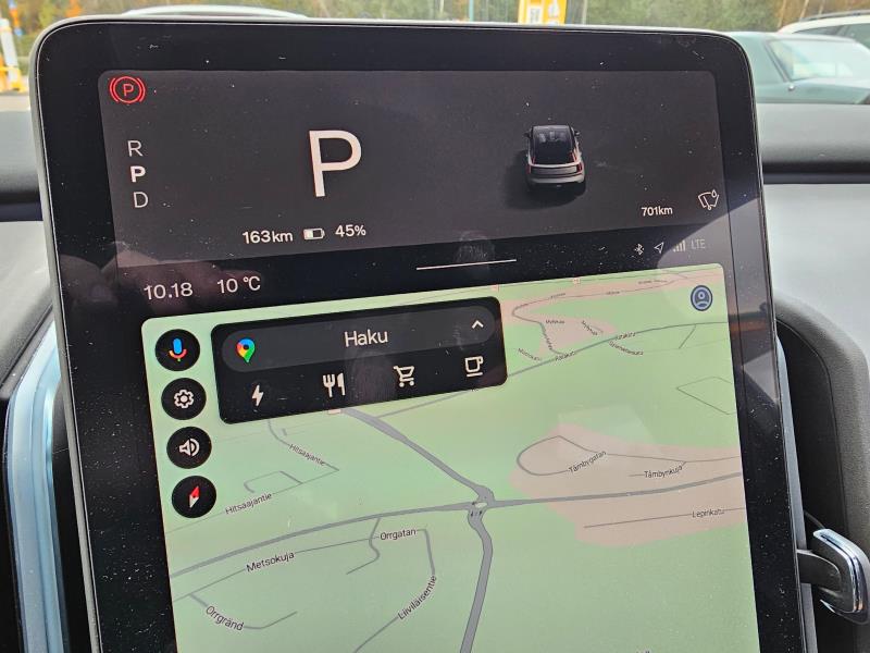 Onneksi näytön takaa löytyvä Googlen käyttöjärjestelmä on helppokäyttöinen ja sopivan yksinkertainen. Keskinäytöstä saadaan siis säädettyä ilmastointia, turva-avustimia, vakionopeudensäädintä, valoja ja niin edelleen. Google luonnollisesti tarjoaa sen kautta myös kattavat karttapalvelut ja navigoinnin, ja saapa autoon ladattua Googlen Play-kaupasta sovelluksiakin (en tosin ollut kirjautunut Google-tililläni autoon, joten en päässyt katsomaan mitä sovelluksia siellä olisi ollut tarjolla).