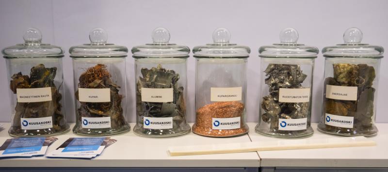 Ständin teemana oli kuitenkin autojen kierrätys ja uusien autojen turvallisuuden korostaminen, joten Talbotia esiteltiin siltä kantilta, miten monta uutta kattilaa siitä esimerkiksi voitaisiin tehdä. Yleisesti ottaen autojen materiaaleista voidaan kierrättää jopa 97 %, mikä on ihan mielettömän hyvä määrä! Purkeissa auton takana oli esillä rouheita autoista kerätyistä materiaaleista, kuten kuparista, alumiinista ja raudasta.